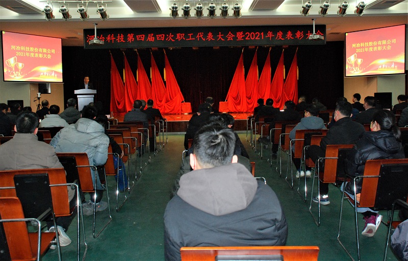 2022年1 月28日,河冶科技四屆四次職工代表大會暨2021年度表彰大會在多功能廳隆重召開。公司黨委書記、董事長楊文義,總經理米永旺及黨委委員、助理以上領導、全體中層干部、職工代表、采購營銷人員、部門骨干、列席代表等出席了會議,安泰科技總經理畢林生、紀委書記劉建欣通過視頻全程參加會議。